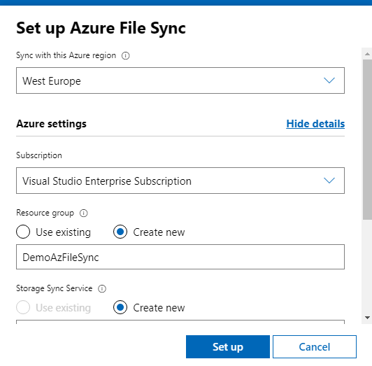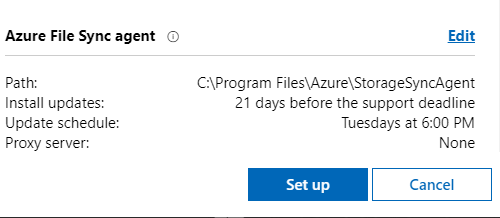 Prepare the Azure File sync agent as needed to be installed on your Windows Admin Center host machine..and hit on “Set up” button.