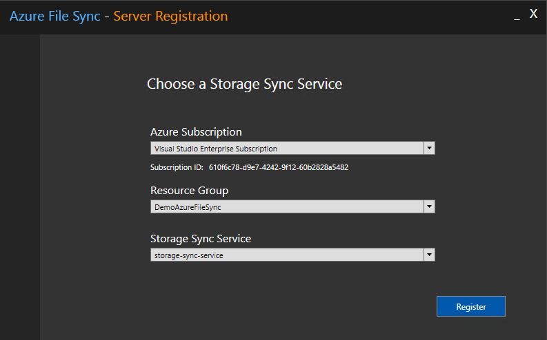 We got to register our new server on Azure File Sync service on Azure to syncronize data on a file share with other File Servers localted all over the world.