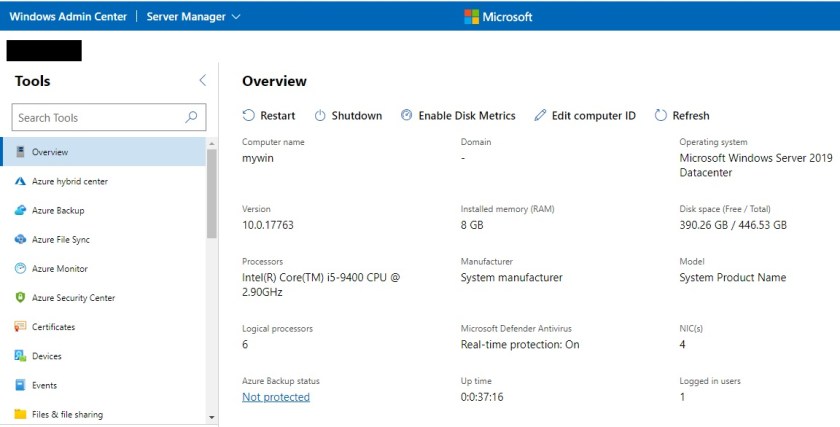 Now after installing you will see the console using the url from local called: https://machinename/servermanager where you can browse information and details of your local or virtual machine and leverage lot of features to manage it.